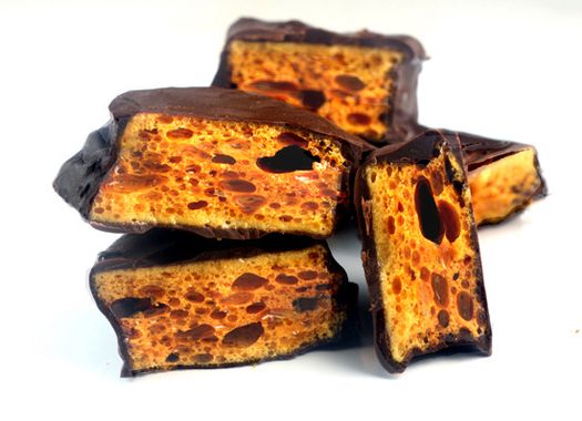 - When cool, use a fine serrated knife to cut the honeycomb into whatever size chucks you like